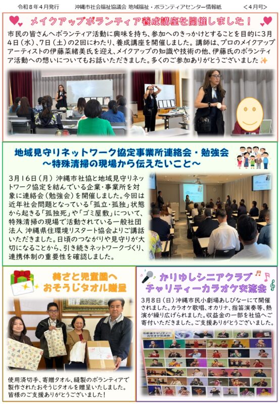 おしらせ,ボランティアの募集,小地域ネットワーク事業,沖縄市ボランティアセンターからのお知らせ,沖縄市ボランティアセンターの活動報告 - 2026/04/21 11:25
