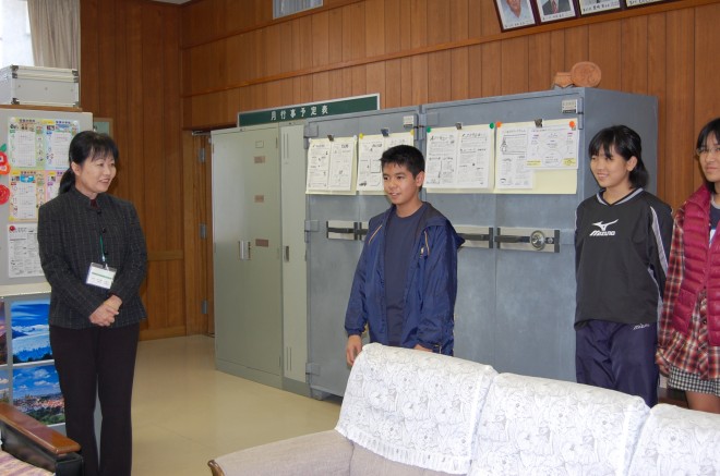 校長室にて児童会の代表が「集まった募金を大切に使ってください。」と元気なあいさつの後、募金の贈呈がありました。集まった募金は、その多さで手渡しができないほどの重さの募金でした。